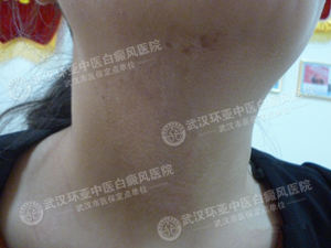 周娟(化名)28岁,至今未婚,男方说治好白癜风才能结婚,在未婚夫的陪同下周娟从北京到医都武汉接受治疗。来诊时嘴边的白斑倒不是很明显,颈部的那一大块白斑显示的太过刺眼。检测结果显示:嘴边的白斑黑色素脱失度在30%~40%之间,颈部白斑处黑色素脱失度在90%以上,且白斑中间没有黑色素岛。》》》在线诊断白斑区域色素脱失程度,让治疗有根有据。